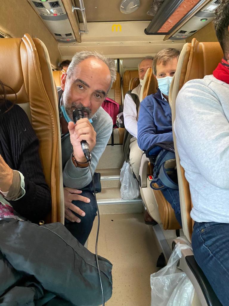 También es cierto que cuando se viaja con amigos el tiempo parece evaporarse entre charlas, bromas, y alguna que otra canción de nuestro “cantante” particular. ¡¡¡Menos mal que viajamos en microbus privado!!!