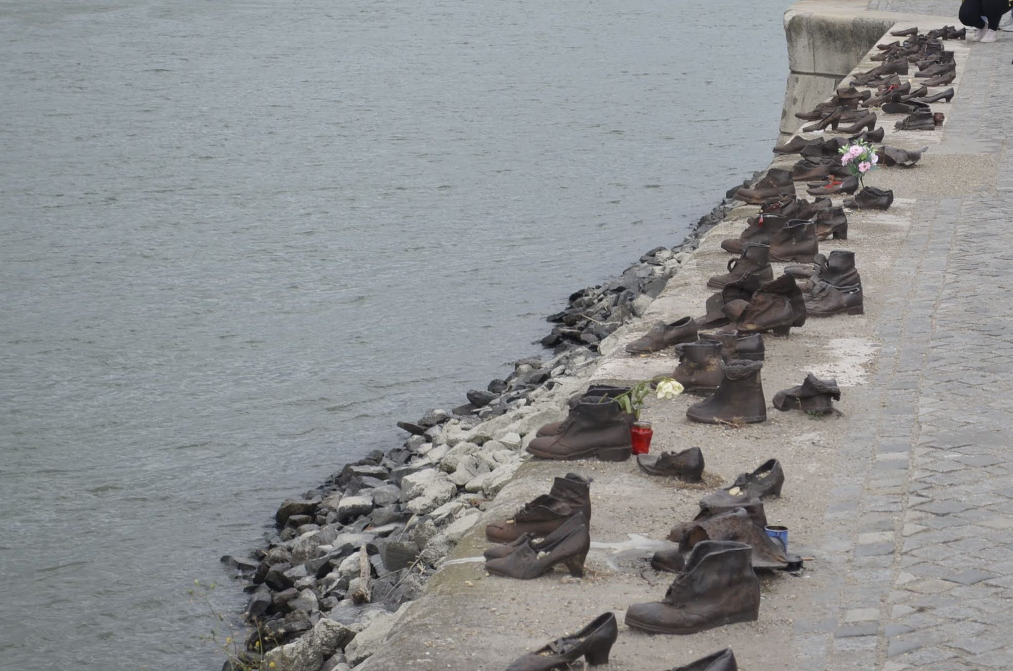 Es un memorial en recuerdo de los judíos que tenían que quitarse los zapatos antes de ser fusilados a orillas del río (II Guerra Mundial).