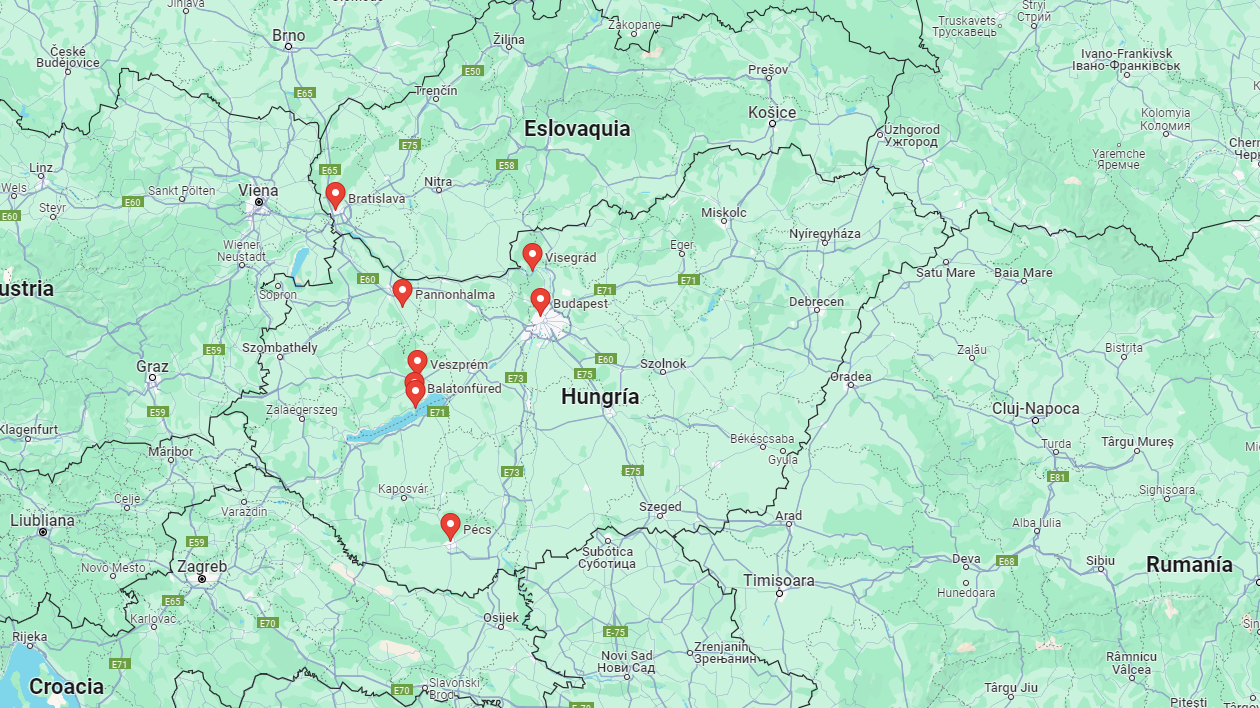 Voy a mostraros el recorrido que hicimos. Además de Budapest, visitamos algunos enclaves históricos e hicimos una pequeña incursión en Bratislava.