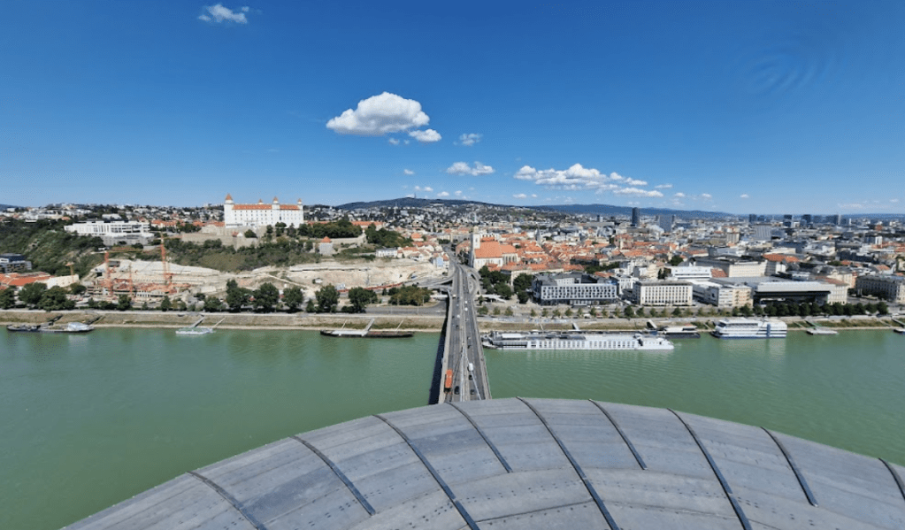 Bratislava está situada en el extremo suroeste del país, de forma que mirando desde el Castillo, se puede ver Austria tras la ciudad. Hungría está a unos 25 km desde ese punto.